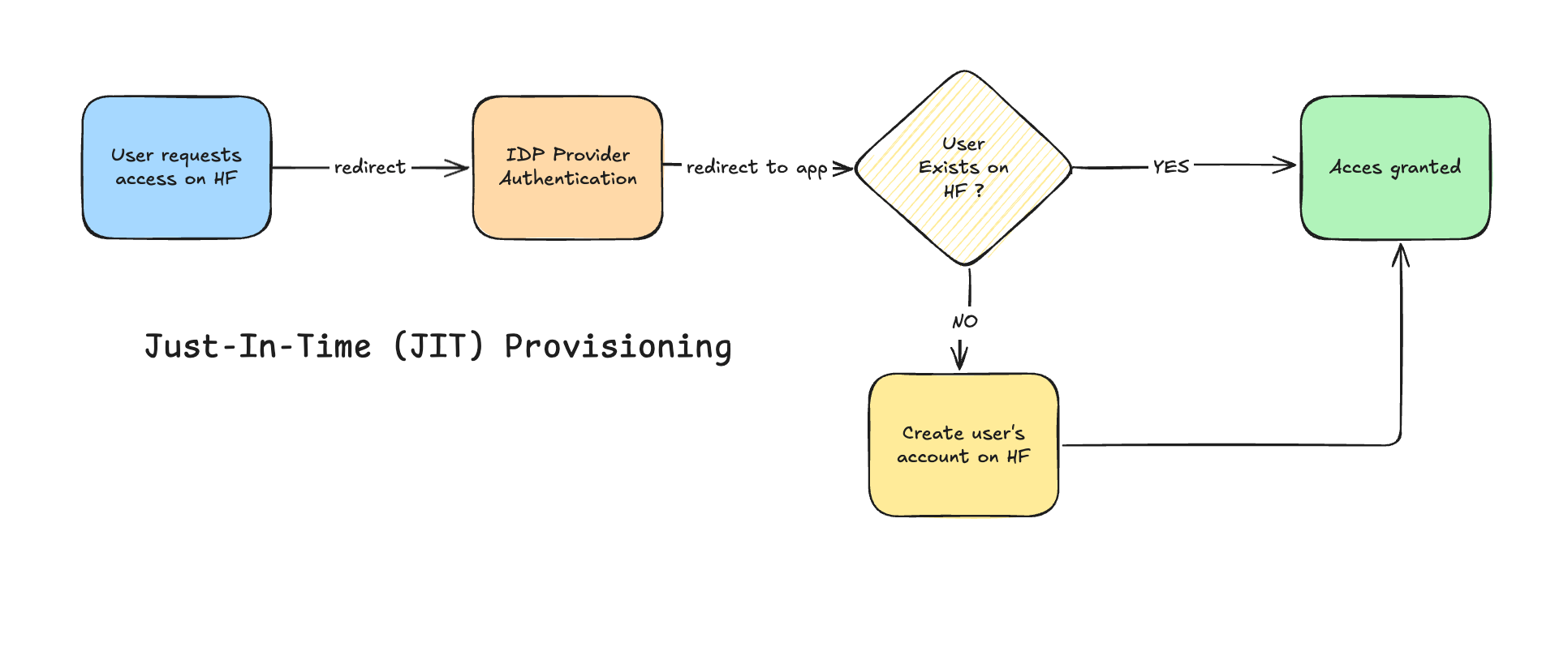 - Just-In-Time (JIT) Provisioning: When a user from your organization attempts to log in to Hugging Face for the first time via SSO, an account can be automatically created for them if one doesn’t already exist. Their profile information and role mappings can be populated based on attributes from your IdP.