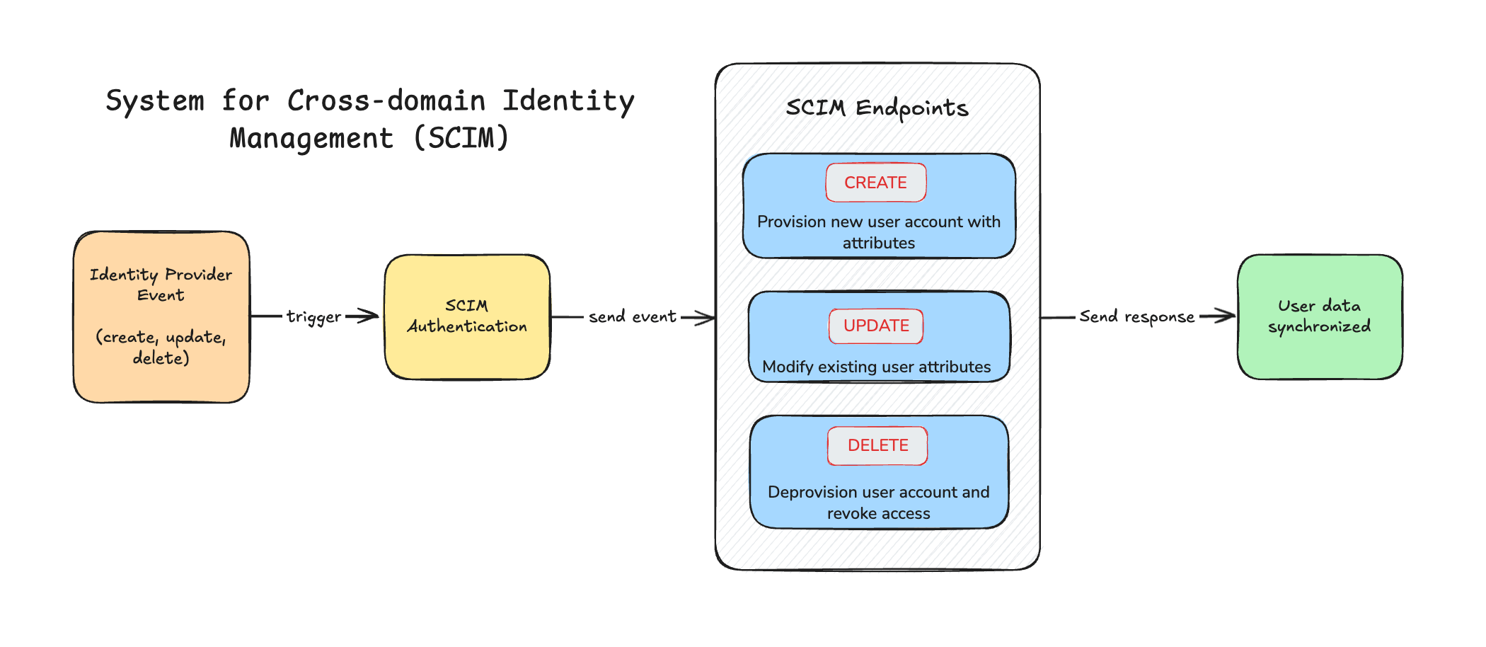 - System for Cross-domain Identity Management (SCIM): For more robust user lifecycle management, SCIM allows your IdP to communicate user identity information to Hugging Face. This enables automatic creation, updates (e.g., name changes, role changes), and deactivation of user accounts on Hugging Face as changes occur in your IdP. This ensures that user access is always up-to-date with their status in your organization.